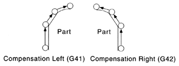 Direção do Arco (G02, G03): Uma interpolação circular pode ser executada em dois sentidos, no sentido horário ou no sentido anti-horário. Dois códigos G especificam o sentido do arco. O código G02 é usado para interpolação circular no sentido horário, e o código G03 é usado para interpolação circular no sentido anti-horário. Tanto o código G02 como o código G03 são modais e são controlados por um código de alimentação (F), da mesma maneira como uma palavra-chave G01.
