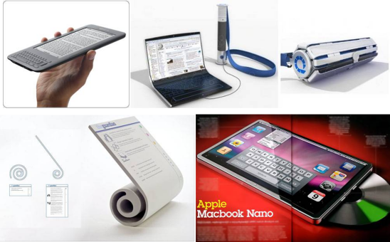 Os computadores terão um aspecto de periódico ou diario, tambem. Um disco rígido de grafeno terá uma capacidade mil vezes superior aos de hoje e com velocidade de ordem de Tera hertz (1000 Giga hertz).